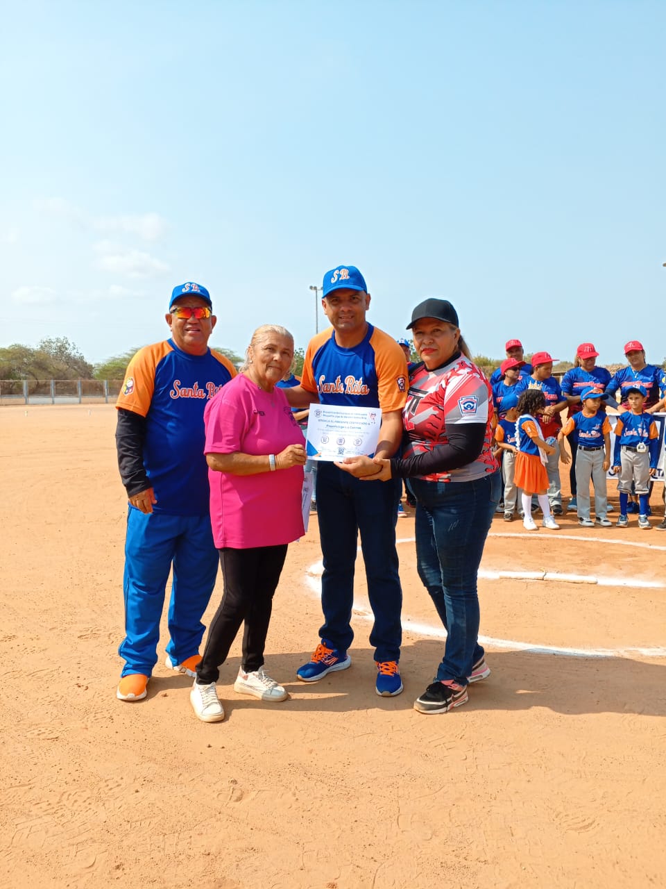 Seguidamente el presidente de la Pequeña Liga Santa Rita Edgar Pez, quien felicito a los equipos participantes deseándole éxito y que gane el mejor , felicitando al comité de damas por el gran trabajo realizado para la actividad, donde s entregaron reconocimiento a todos los participantes como alos colaboradores de la actividad.