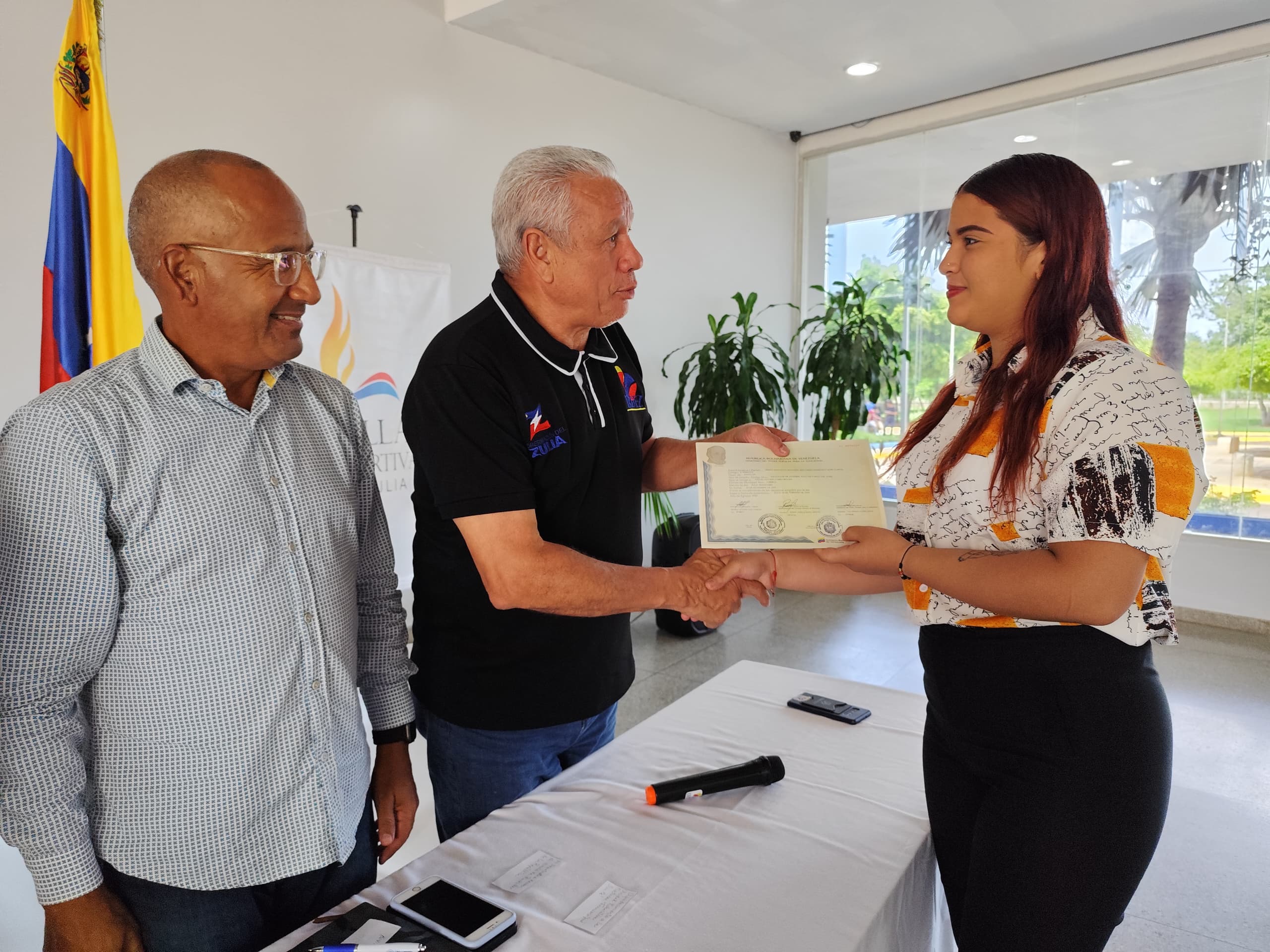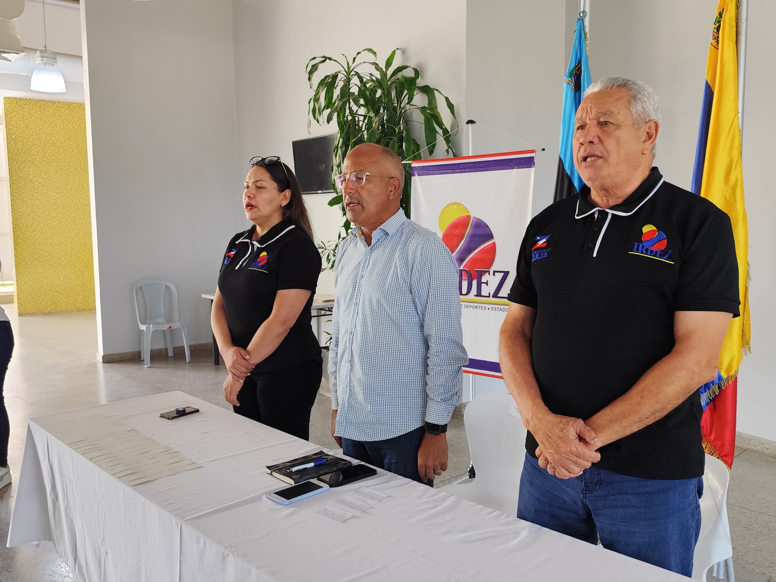 Jesús Ortega, Sub Secretario de Deportes, Francisco Riera, Director Técnico del Irdez, y Pierina Valbuena, Coordinadora de Atención al Atleta, presidieron el acto que se realizó en la Villa Deportiva Arquímedes Herrera.