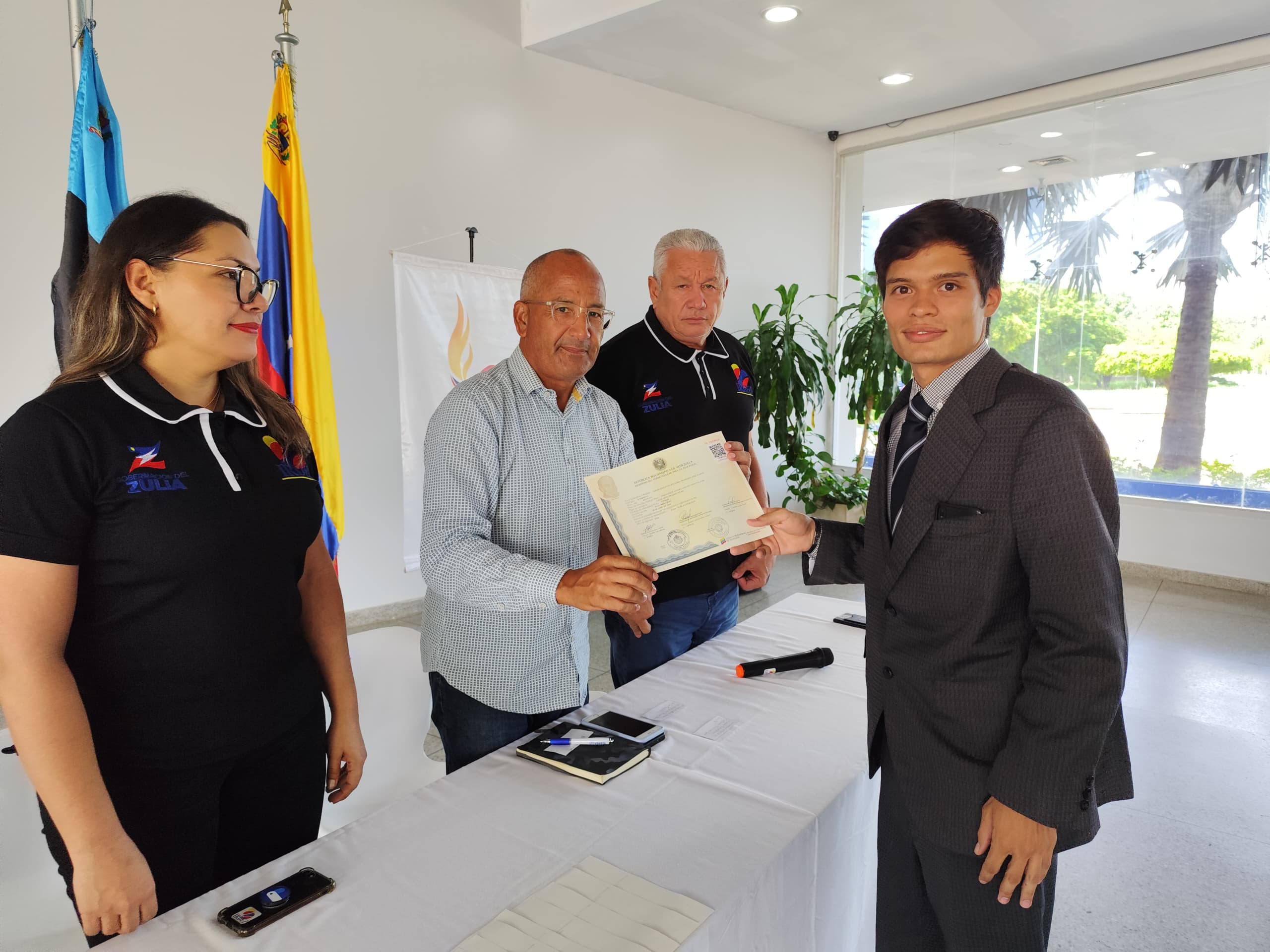 Joswel Cogoyo atleta integrante de la selección de Zulia de fútbol sala para los Juegos Deportivos Nacionales Juveniles expresó las palabras de agradecimiento en nombre de todos los graduandos, y Kevin Urdaneta, igualmente a la contienda venezolana en atletismo, efectuó la solicitud de conferimiento de títulos a las autoridades.