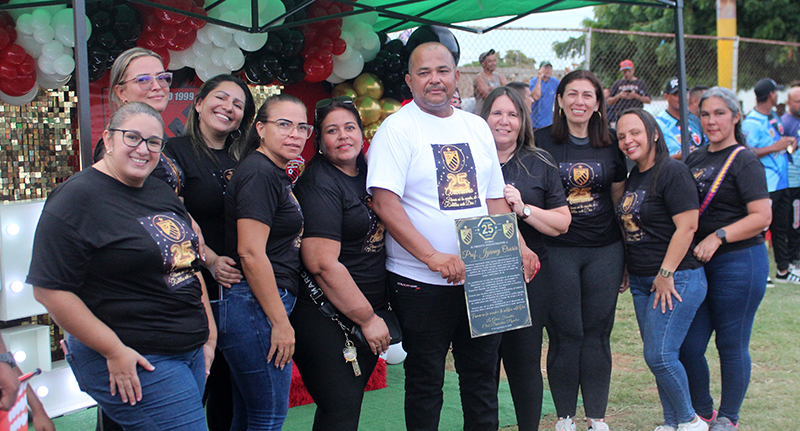 Celebración a lo grande con una bella decoración y la muchachada en el campo la directiva inicio su celebración del 25 aniversario con un fuerte aplauso a todos los protagonistas.