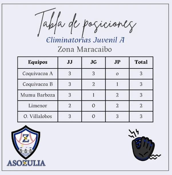 José Gil Deportes Digital/Maracaibo: La Asociación de Beisbol del Zulia, realiza las Eliminatorias zonas de Maracaibo y Costa Oriental en las categorías Juvenil AA y AAA, con miras a escoger la selección del estado a los Campeonatos Nacionales organizados por la Federación Venezolana de Béisbol y la Selección del Zulia a los Juegos Deportivos Nacionales.