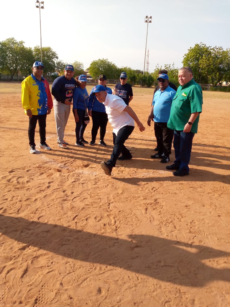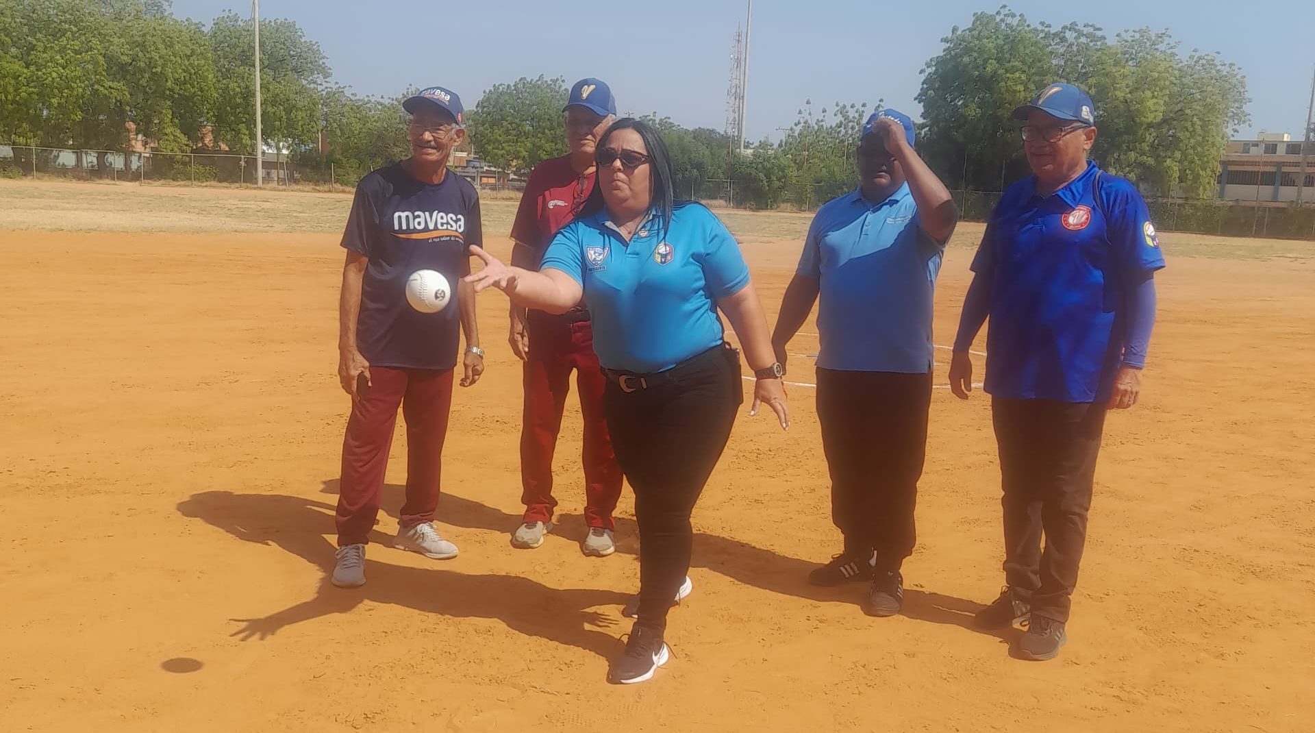 El acto protocolar se llevó a cabo con el lanzamiento inicial de Liliana Fuenmayor, presidente de la Asociación de Béisbol del estado Zulia.