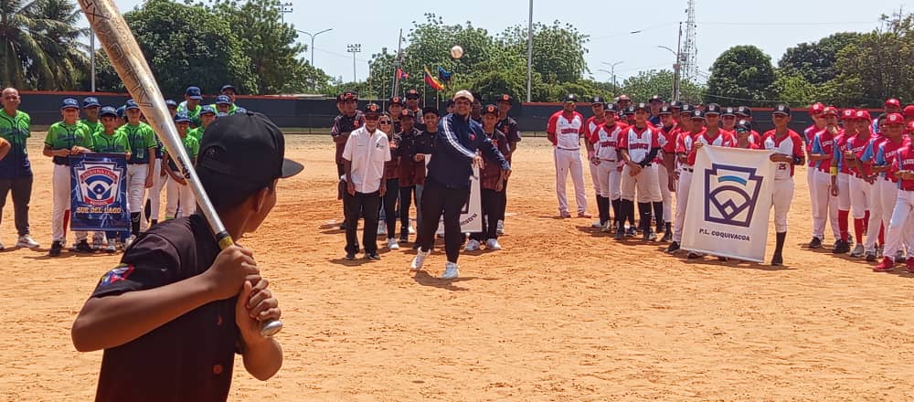 Para finalizar el acto inaugural homenajes, el joven Néstor Vielma gran colaborador f de la Pequeñas Ligas Sierra Maestra realizo el primer lanzamiento para dejar inaugurada la Final Nacional Intermedias de Pequeñas Ligas
