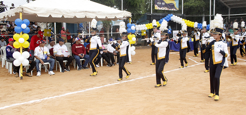 Al compas musical de la Banda de la Fundación Municipal Escuela Santa Rita, se inicio el desfile con la entrada de los símbolos patrios y los estandartes de la Pequeñas Ligas de Venezuela y Sierra Maestra.