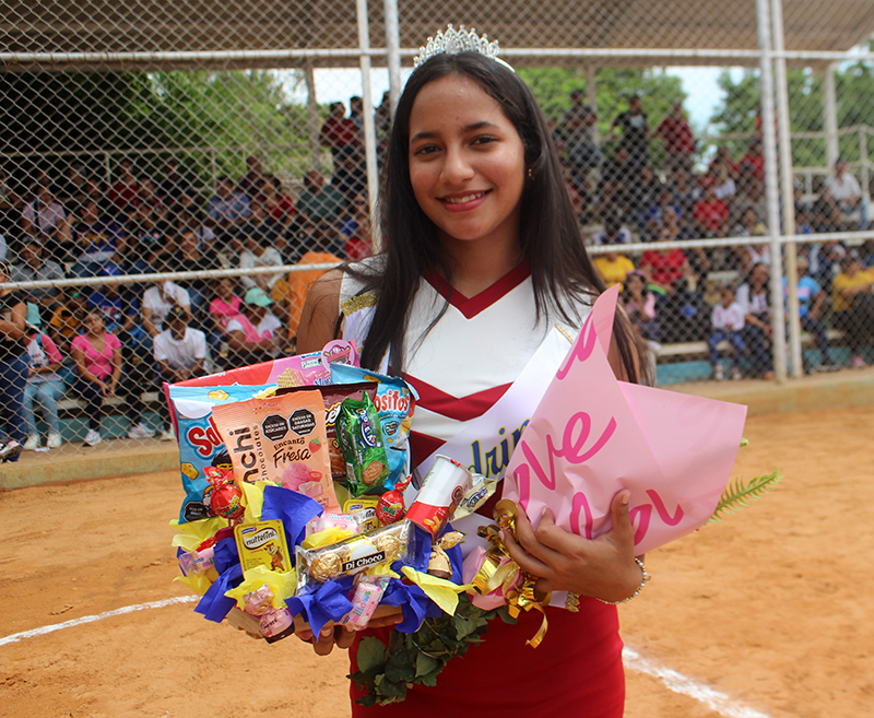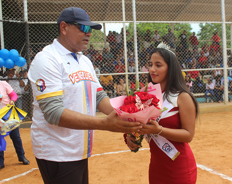 Dando paso a la elección de la reina del Torneo 45 aniversario siendo electa la señorita Silvana Escalona del equipo Boston de la categoría Junior, la banda y la corona colocada por el secretario de deportes del Zulia Alexander Delgado.