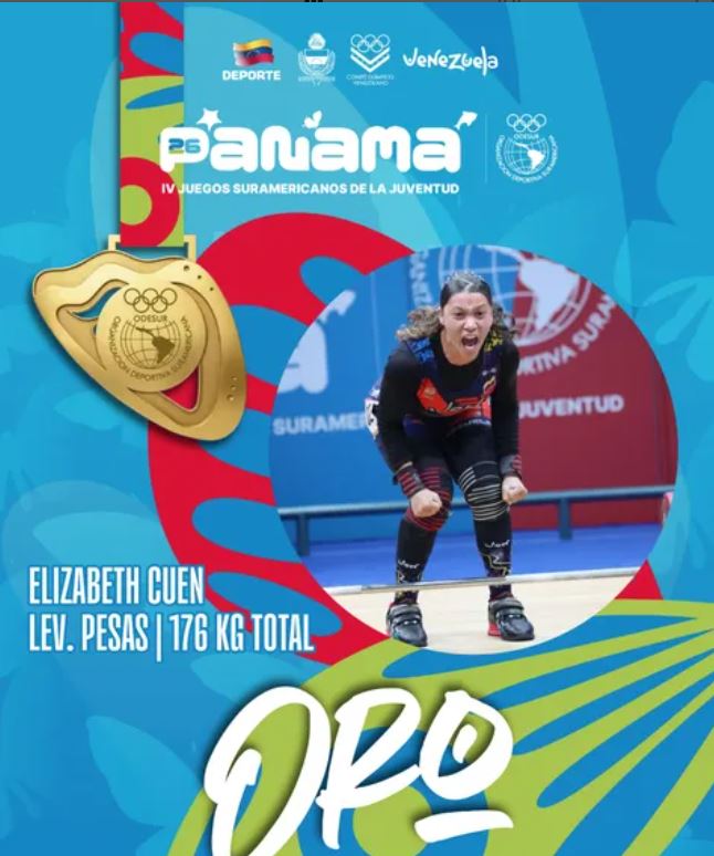 José Gil / Deportes Digital La bandera de Venezuela y el orgullo del estado Zulia ondearon en lo más alto del podio gracias a la imponente actuación de Elizabeth Cuen. En la jornada inaugural del levantamiento de pesas de los Juegos Suramericanos, celebrada en el Centro de Entrenamiento «Tierra de Campeones Atheyna Bylon», la sanfranciscana se colgó la medalla de oro.