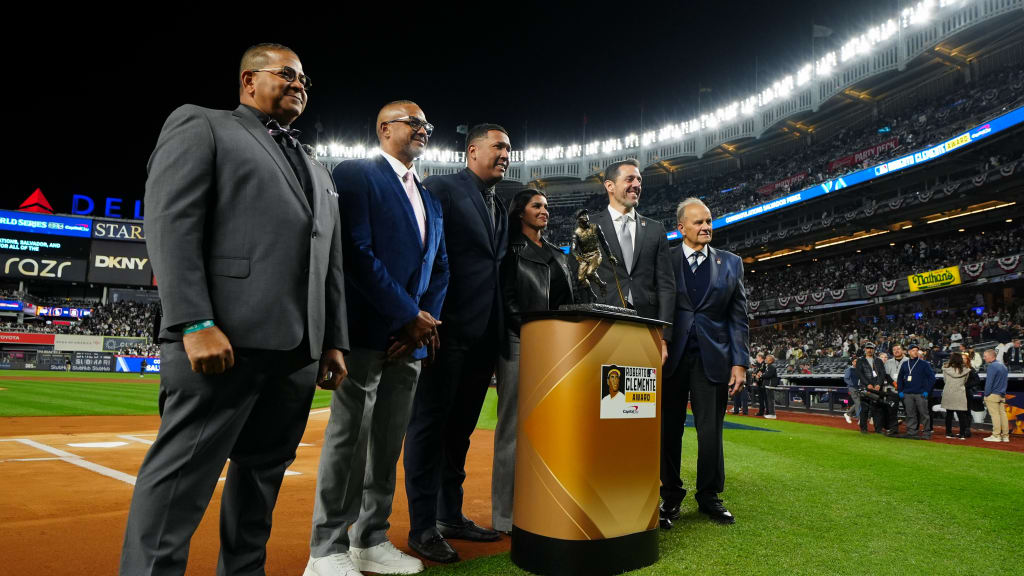 Pérez recibió el galardón de parte del Comisionado de Grandes Ligas, Rob Manfred, previo al Juego 3 de la Serie Mundial en el Yankee Stadium el lunes.