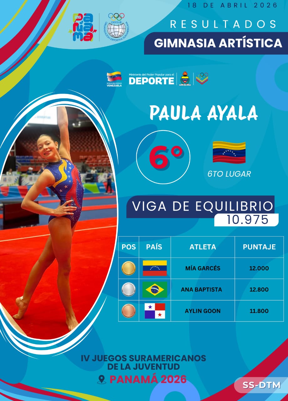 José Gil Deportes Digital/Maracaibo: La gimnasia artística zuliana sigue cosechando éxitos en el ámbito internacional. Paula Ayala, integrante de la Selección Nacional de Venezuela, firmó una destacada actuación en los IV Juegos Suramericanos Juveniles Panamá 2026, logrando meterse entre las mejores del continente en la modalidad de Viga de Equilibrio.