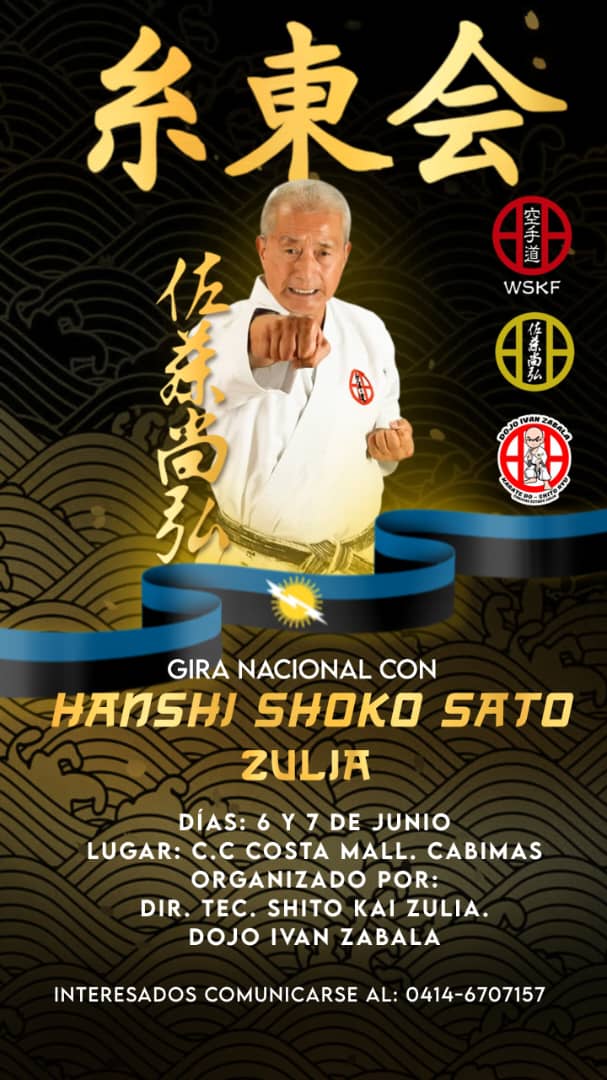 Nota de Prensa: Los días 6 y 7 de junio, el estado Zulia será escenario de una cita histórica con la marcialidad y el Karate de élite. El Centro Comercial Costa Mall albergará el Seminario Nacional Shito Kai, que contará con la distinguida presencia del Hanshi Shoko Sato, considerado el padre del Karate venezolano, fundador del primer dojo formal en el país y de la Asociación Shito Kai de Venezuela.