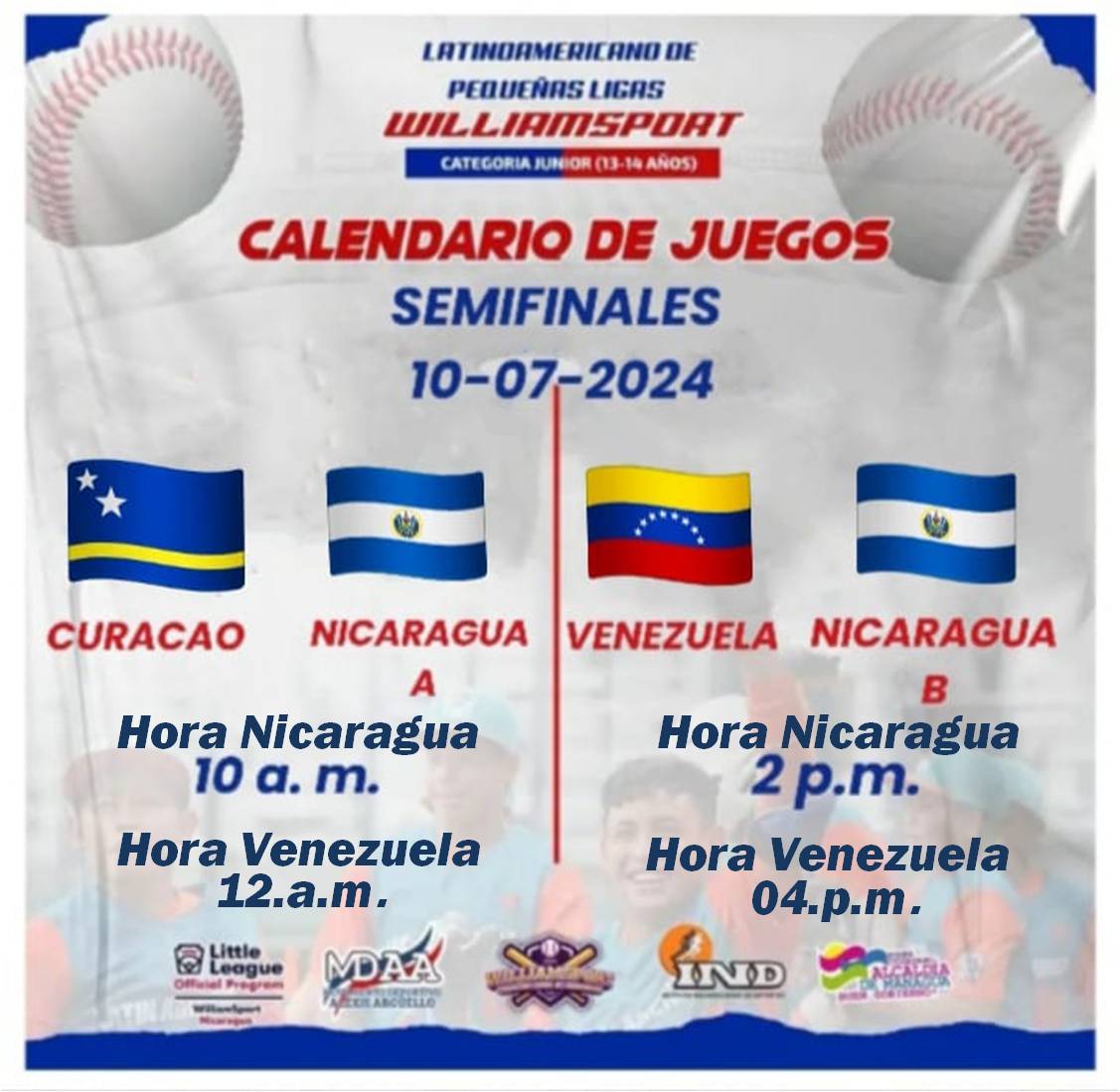 Curazao se enfrentara a la novena de Nicaragua A, a las 12.00 del mediodía hora de Venezuela en el estadio IND «Jackie Robinson de Nicaragua.