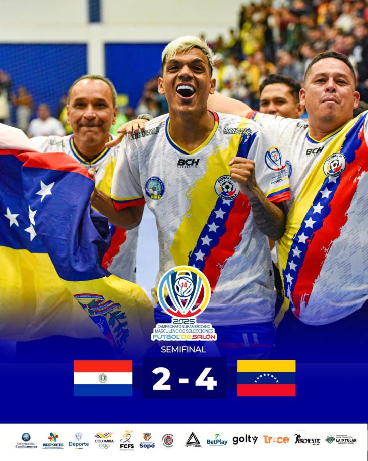 José Gil Deportes Digital/Maracaibo: La selección de futbol de salón conquisto su pase a la final del Suramericano de Selecciones de Futbol de Salón al vencer en semifinal al equipo de Paraguay con pizarra 4-2 en encuentro jugado este viernes en el Coliseo Municipal Poso de Cundinamarca.
