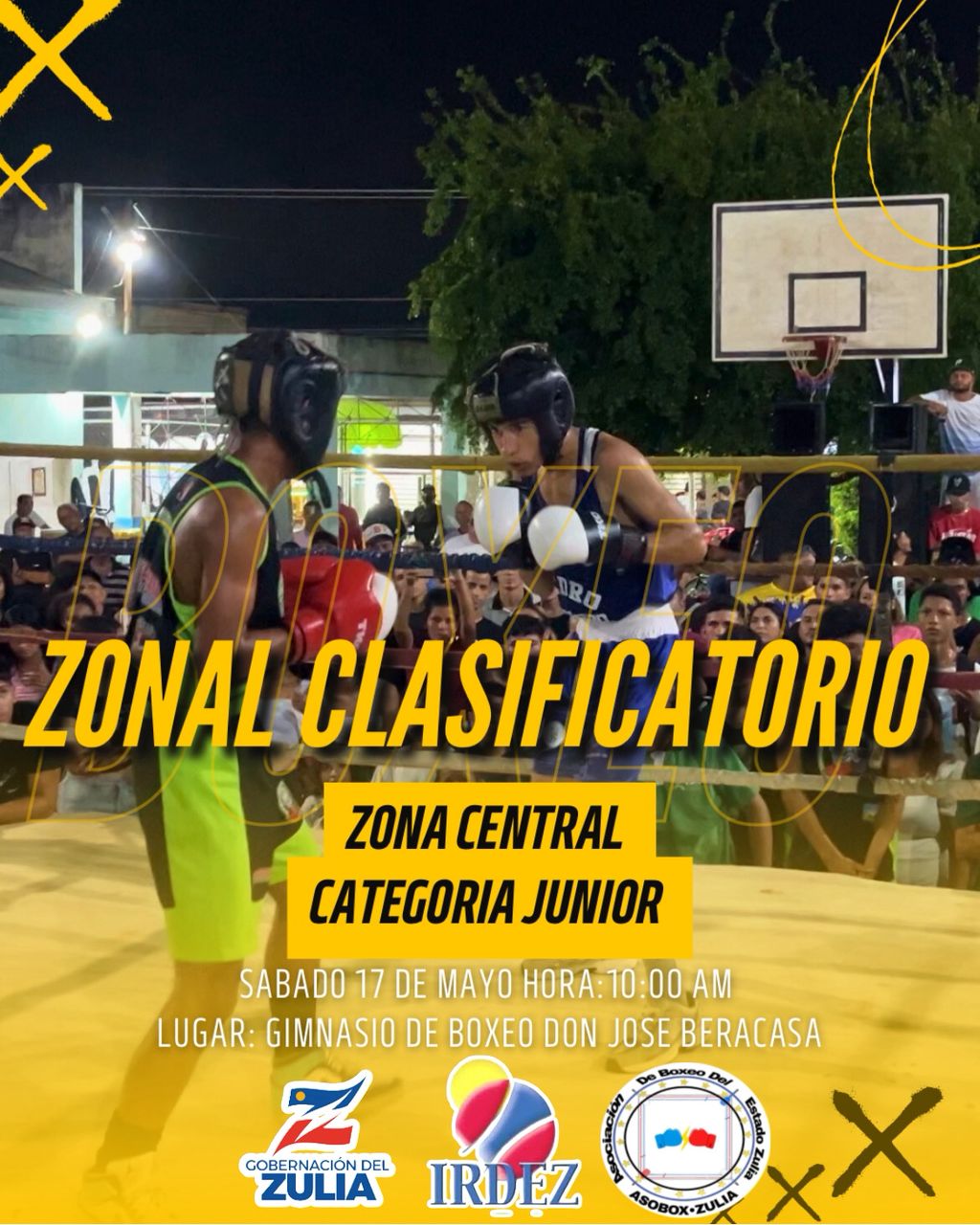 Jose Gil Deportes Digital/Maracaibo: La Zonal Central de Boxeo realizara este sabado 17 de mayo el Clasificatorio Junior de Boxeo, con miras conformar la selecion que estara presenete en el estatal de la categoria, la cartelara boxistica contara con la participación aproximadamente de 30 boxeadores masculino y femenino de 13 escuelas de boxeo que veran acción desde las 10 de la mañana en el cuadrilatero del gimnasio Don Jose Beracasa del polideportivo de Maracaibo.