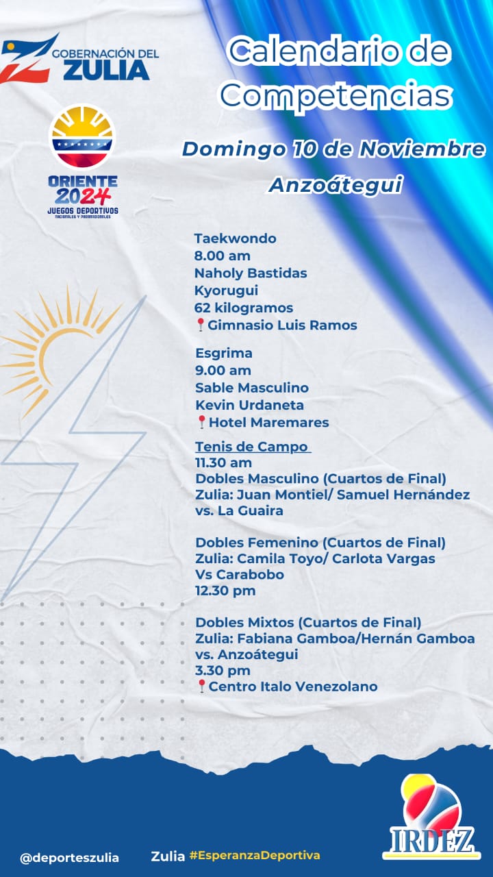 El equipo de Dobles Mixtos enfrentara a las sede Anzoátegui las 03.30 de la tarde.