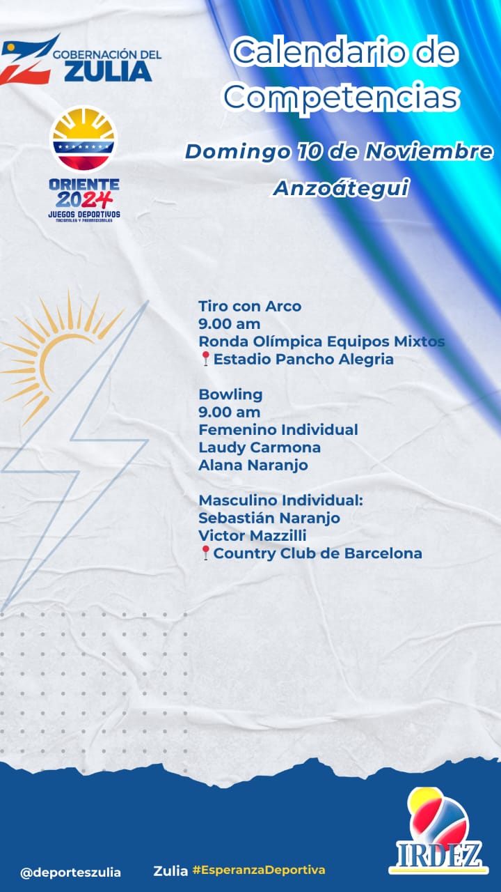Este domingo la delegación zuliana continúa su acción en la boliche, natación, bolas criollas, coleo, ciclismo, judo, tiro con arco,
